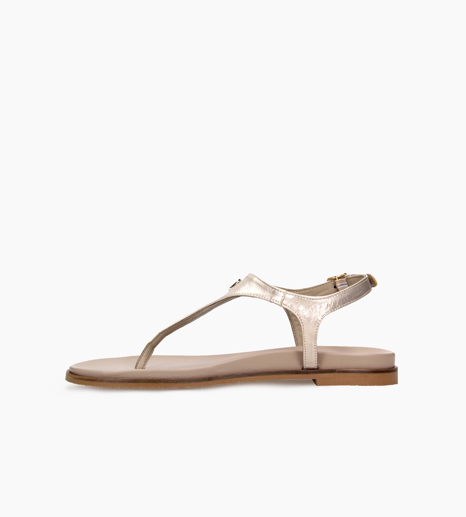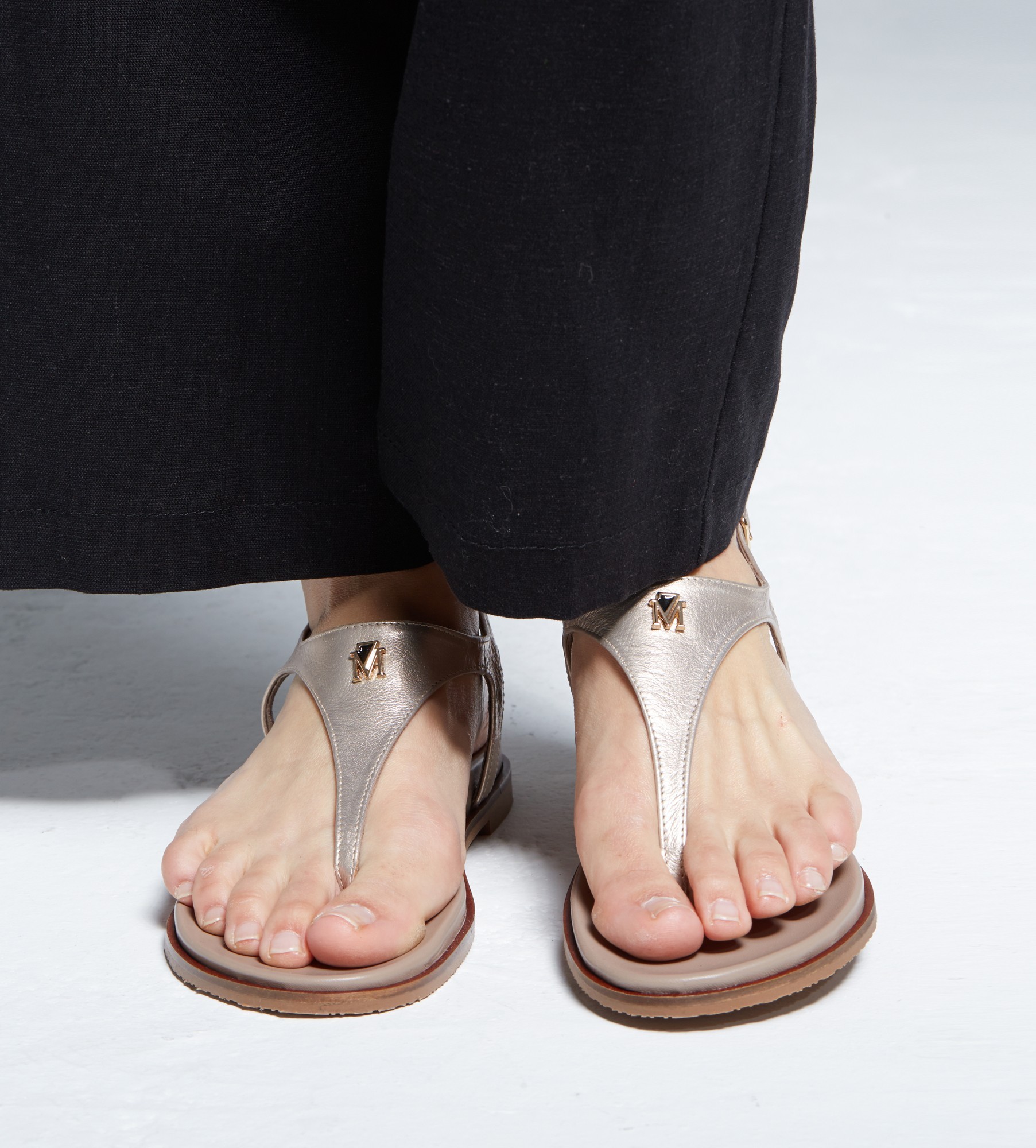 Złote japonki damskie z paskiem między palcami to doskonały wybór dla kobiet ceniących wygodę i styl. Wykonane z najwyższej jakości naturalnej skóry licowej, z profilowaną wkładką z jagnięcej skóry, zapewniają nie tylko trwałość, ale i komfort. Pasek między palcami gwarantuje stabilność i pewność kroku. Te sandały wyróżniają się minimalistycznym designem, który łatwo komponuje się z różnymi stylizacjami, doskonale pasując zarówno do letnich sukienek, jak i do jeansów czy szortów.