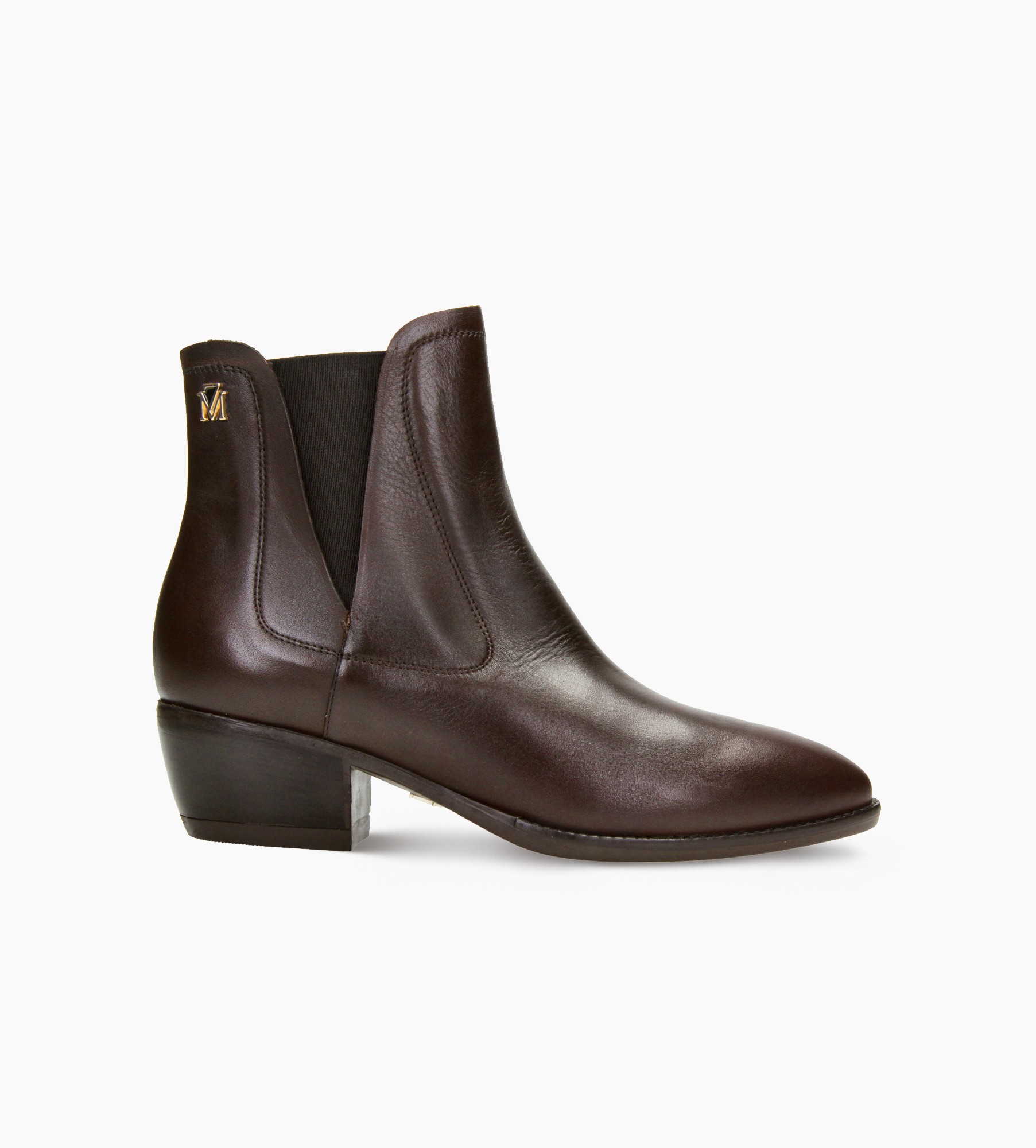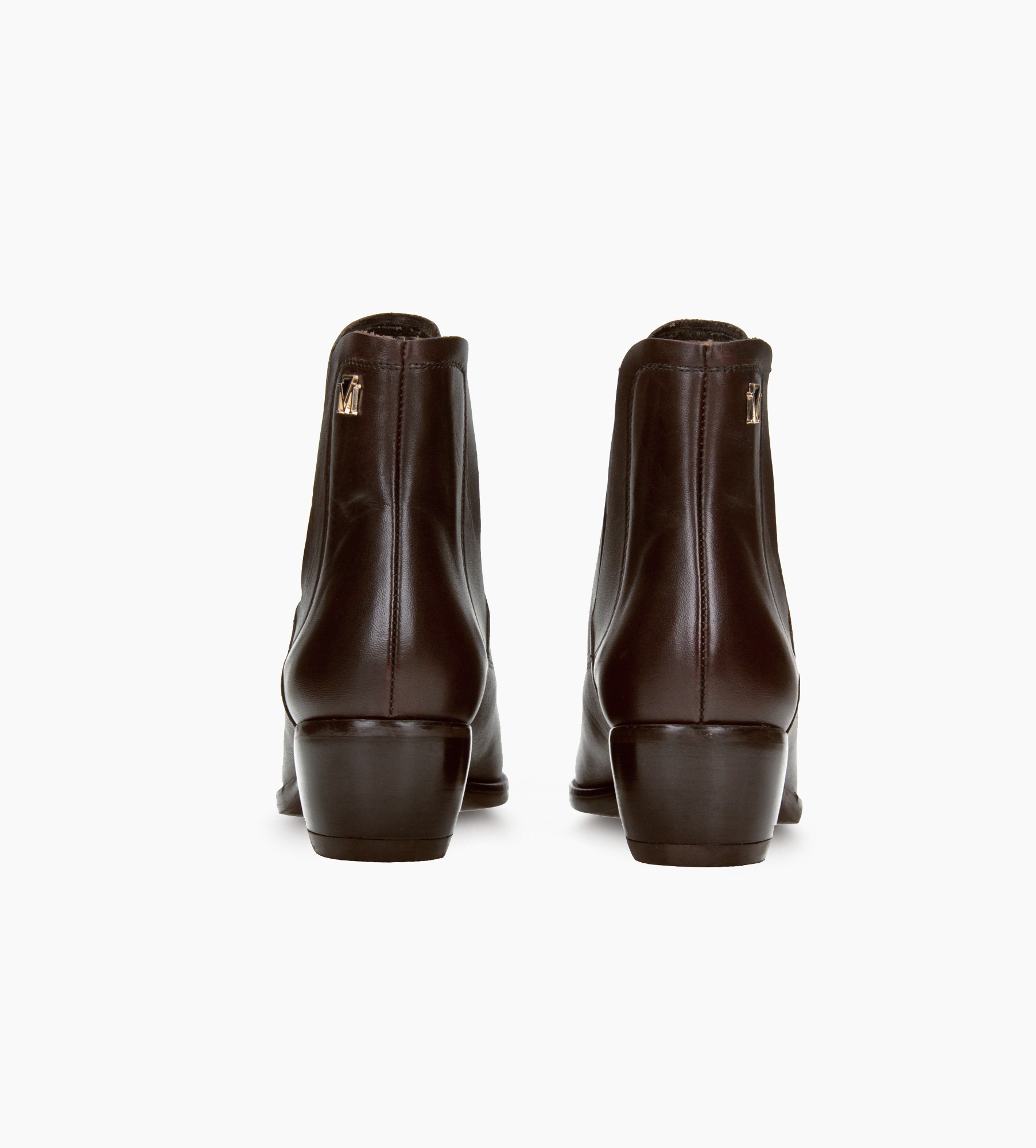 Eleganckie sztyblety wykonane z miękkiej, naturalnej skóry cielęcej to doskonała propozycja na sezon jesienno-zimowy dla kobiet ceniących klasykę, komfort i jakość premium. Wnętrze buta wyściełane delikatną skórą jagnięcą otula stopę miękkością i zapewnia przyjemne ciepło nawet w chłodne dni. Charakterystyczne boczne elastyczne wstawki ułatwiają zakładanie i gwarantują doskonałe dopasowanie do stopy, a wygodny, stabilny obcas nadaje sylwetce lekkości, nie rezygnując z codziennego komfortu. Głęboki odcień czekoladowego brązu dopełniony został subtelnym, złotym logo marki umieszczonym przy górnej krawędzi cholewki – to detal, który podkreśla ekskluzywny charakter modelu.