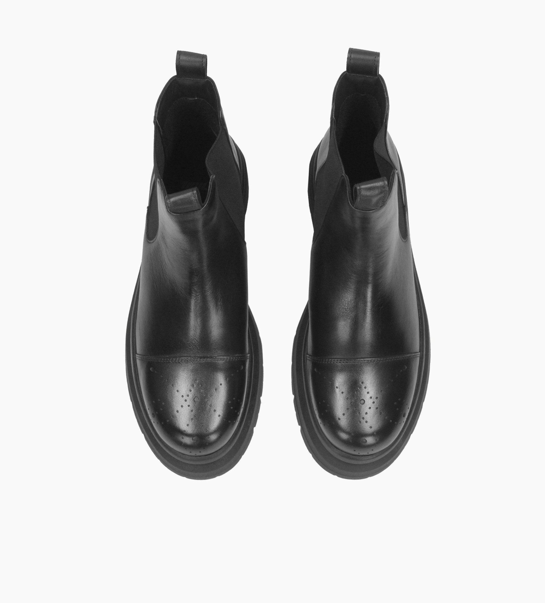 Czarne sztyblety damskie z ozdobną perforacją na nosku wykonane są z naturalnej skóry cielęcej, co zapewnia trwałość i elegancję. Wnętrze oraz wkładka wyściełane są ocieplającym kocykiem 1,5 mm , co zapewnia komfort noszenia w chłodniejsze dni. Buty posiadają elastyczne gumki po bokach, ułatwiające zakładanie. Wysokość obcasa wynosi 4 cm. Te stylowe sztyblety są idealne zarówno na co dzień, jak i na bardziej eleganckie okazje.