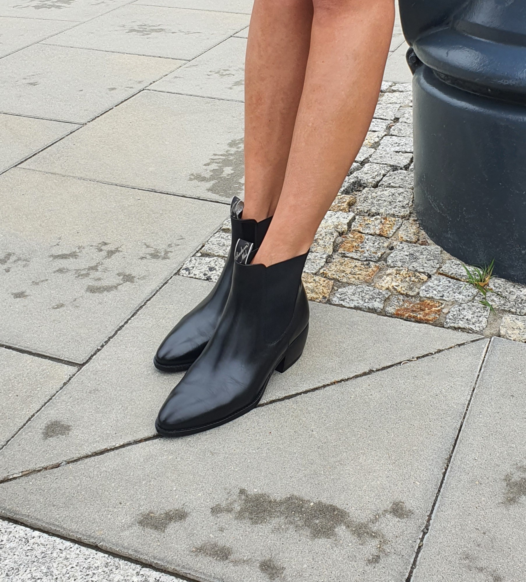 Postaw na minimalistyczną elegancję z nowoczesnym akcentem. Czarne sztyblety z naturalnej skóry cielęcej idealnie komponują się z dopasowanymi, grafitowymi spodniami z kantem i oversize’owym płaszczem w odcieniu antracytu lub głębokiej zieleni. Pod spód załóż cienki golf z miękkiej wełny w kolorze śmietankowej bieli, a całość uzupełnij skórzaną torebką typu tote i geometrycznymi kolczykami.