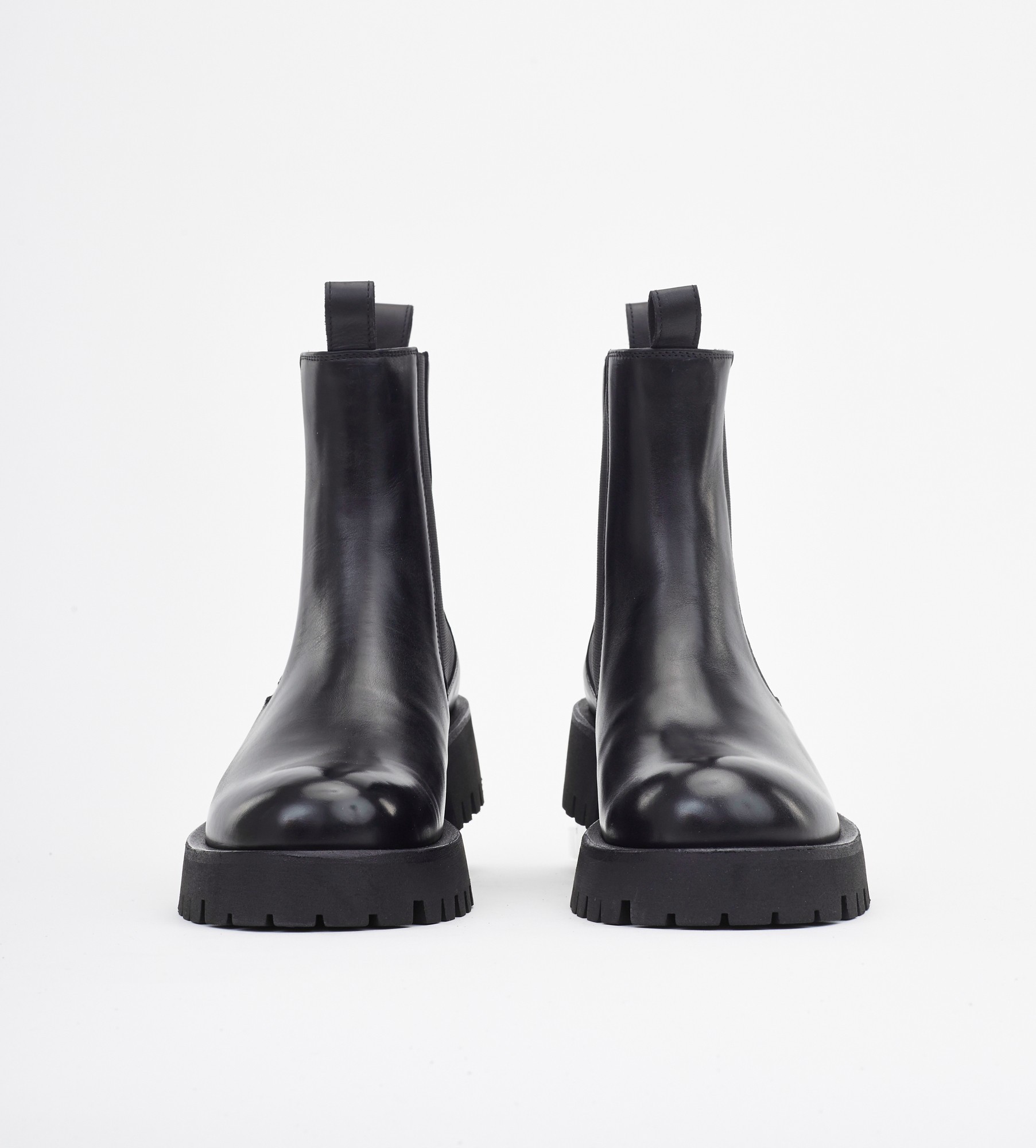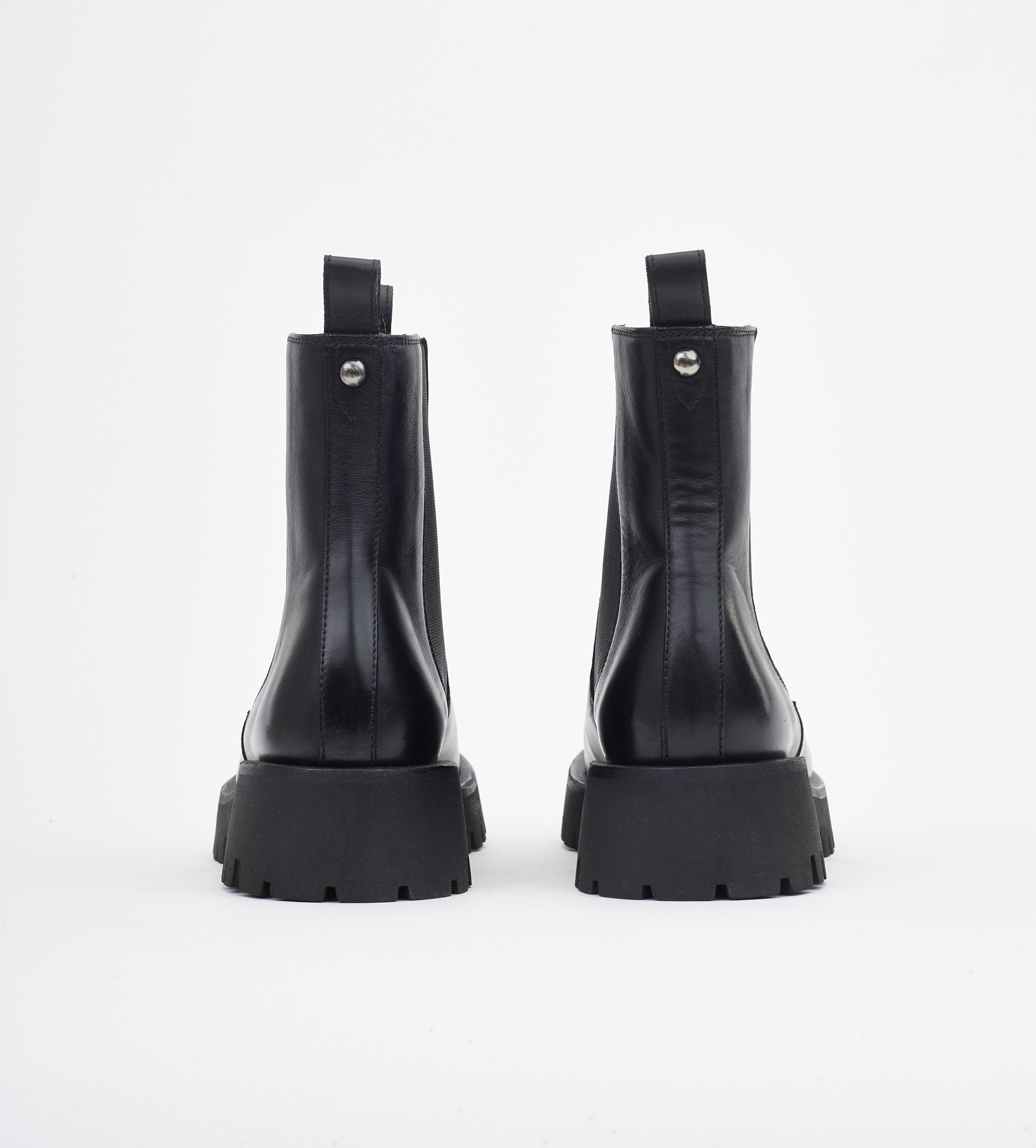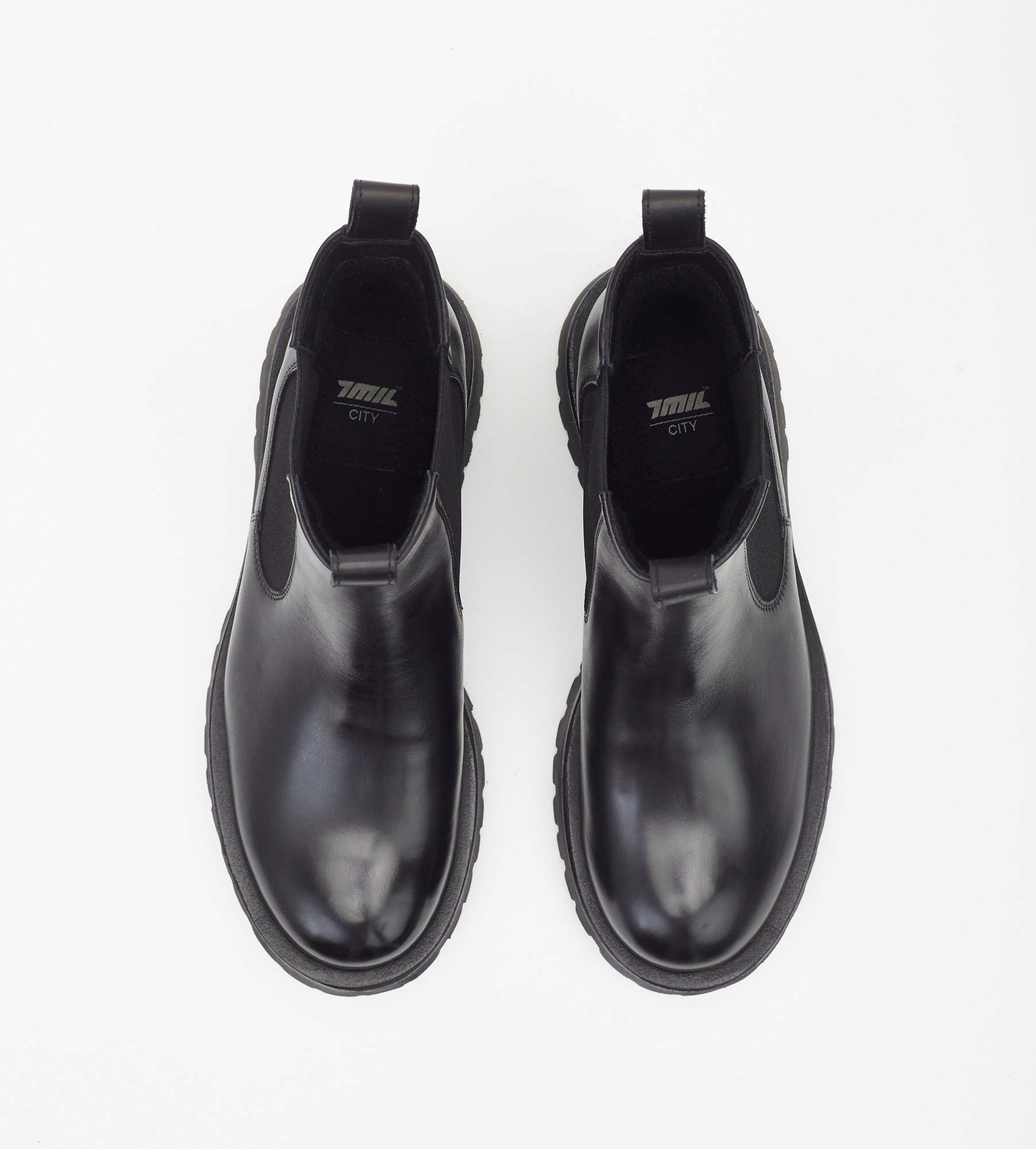 Czarne sztyblety z naturalnej skóry cielęcej, które łączy w sobie klasyczny styl z nowoczesnymi akcentami. Wnętrze butów oraz wkładka wykończone są ociepleniem kocyk o grubości 1,5 mm, co gwarantuje komfort noszenia nawet w chłodniejsze dni. Ryflowana podeszwa zapewnia dobrą przyczepność i stabilność na różnych powierzchniach. Elastyczne, czarne gumy po bokach ułatwiają zakładanie i zdejmowanie butów, jednocześnie zapewniając idealne dopasowanie do stopy. Te sztyblety to doskonały wybór zarówno do codziennych, jak i bardziej eleganckich stylizacji, zapewniając komfort i styl przez cały dzień.