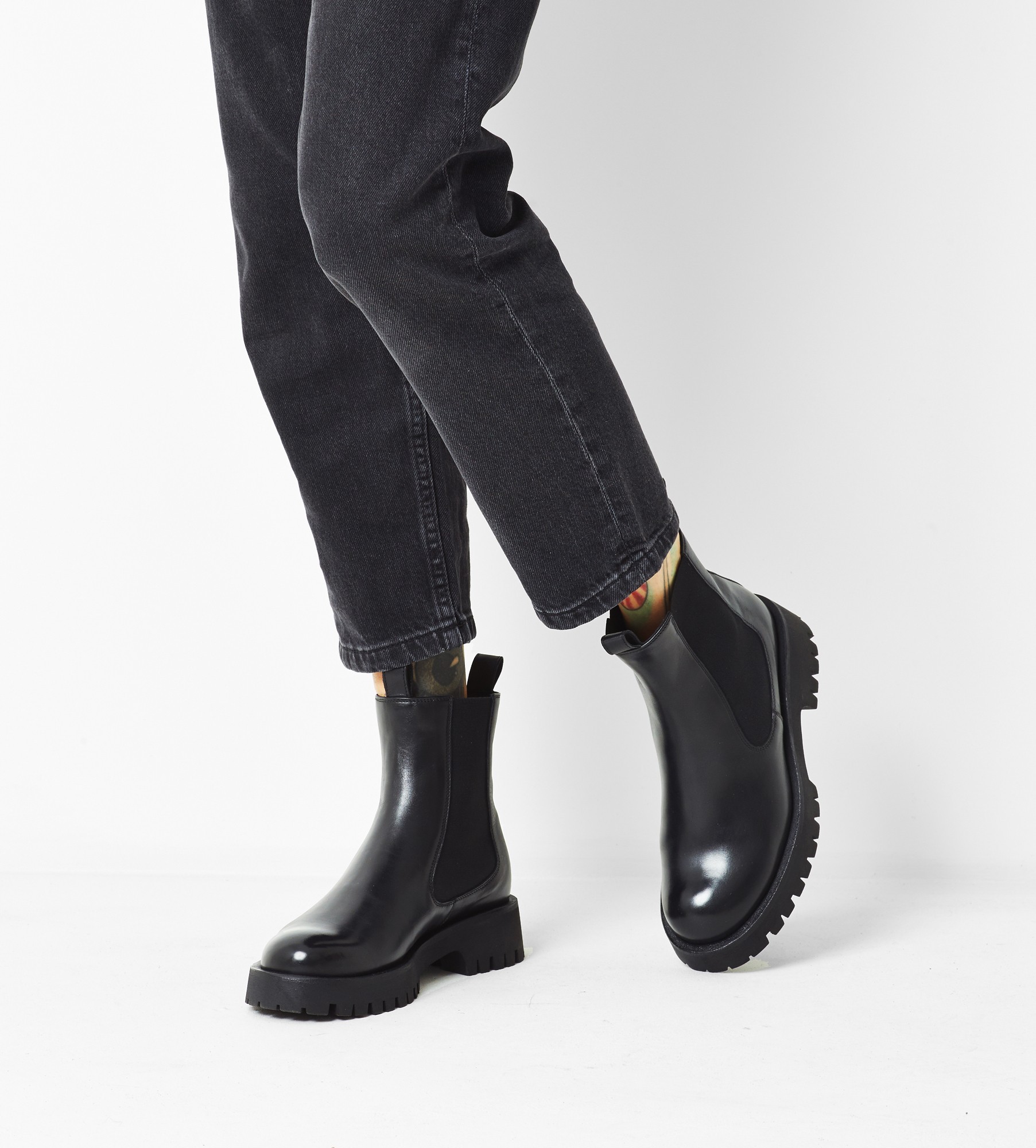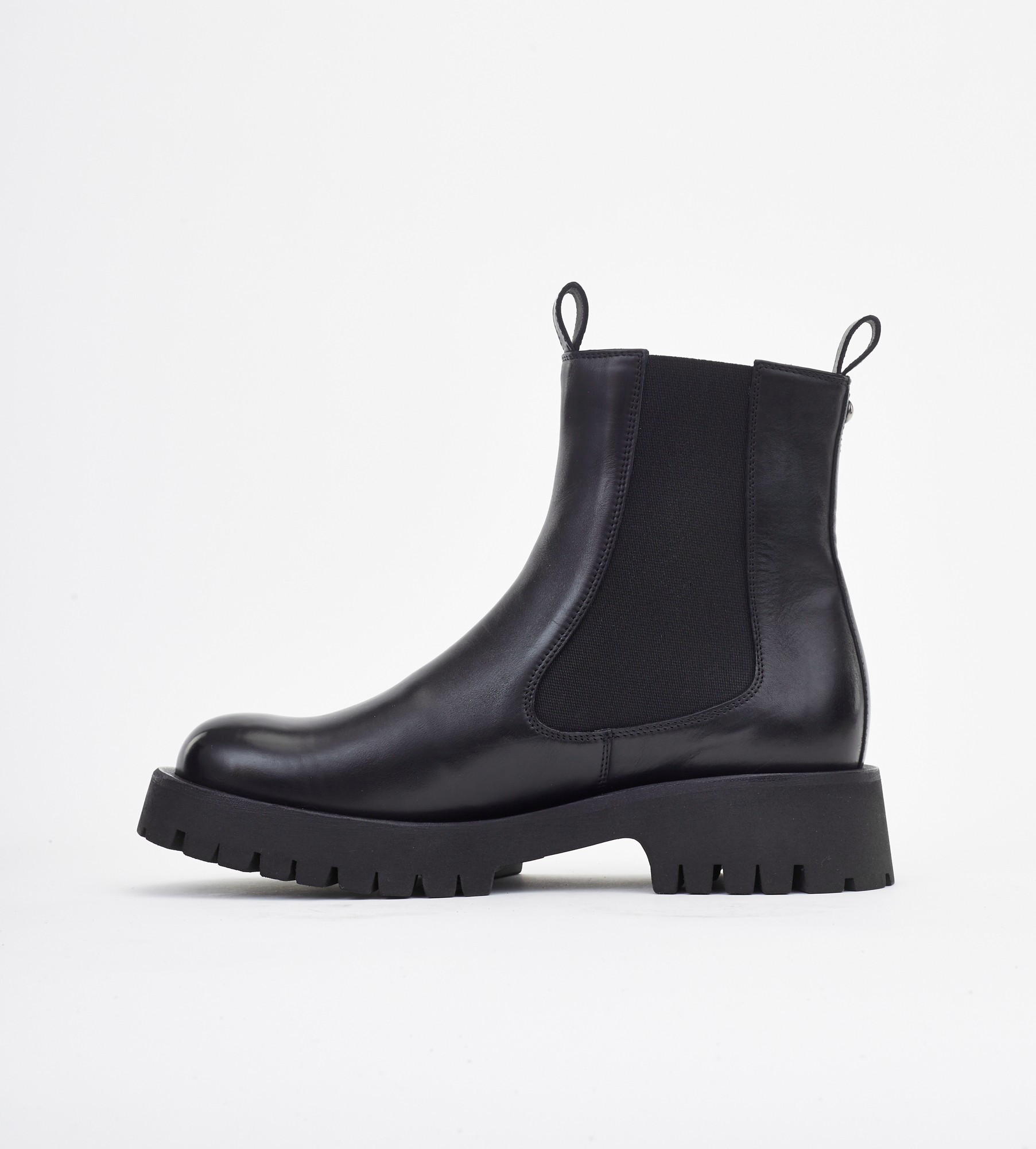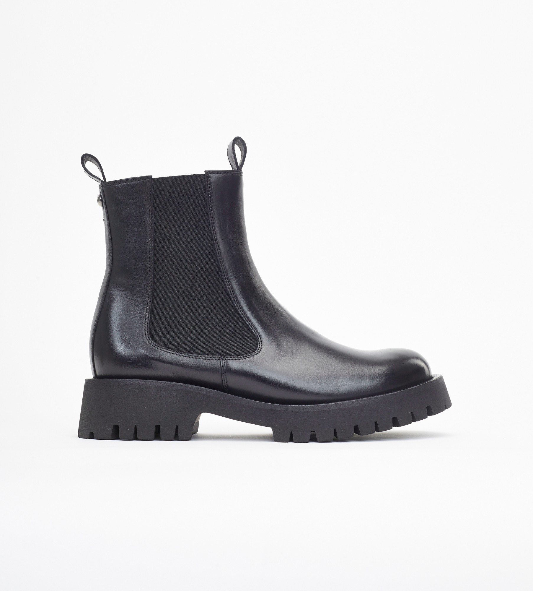 Czarne sztyblety z naturalnej skóry cielęcej, które łączy w sobie klasyczny styl z nowoczesnymi akcentami. Wnętrze butów oraz wkładka wykończone są ociepleniem kocyk o grubości 1,5 mm, co gwarantuje komfort noszenia nawet w chłodniejsze dni. Ryflowana podeszwa zapewnia dobrą przyczepność i stabilność na różnych powierzchniach. Elastyczne, czarne gumy po bokach ułatwiają zakładanie i zdejmowanie butów, jednocześnie zapewniając idealne dopasowanie do stopy. Te sztyblety to doskonały wybór zarówno do codziennych, jak i bardziej eleganckich stylizacji, zapewniając komfort i styl przez cały dzień.