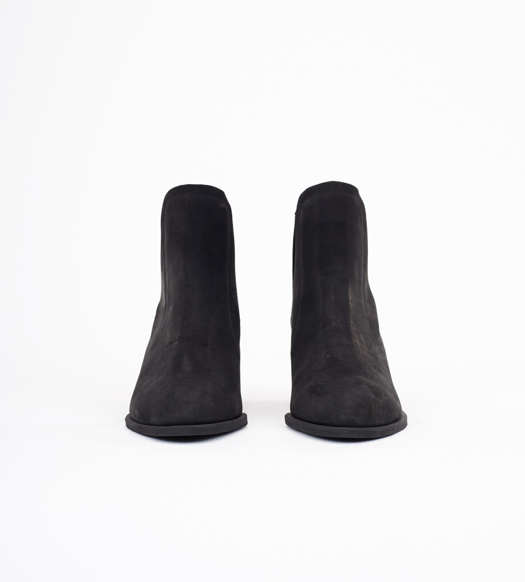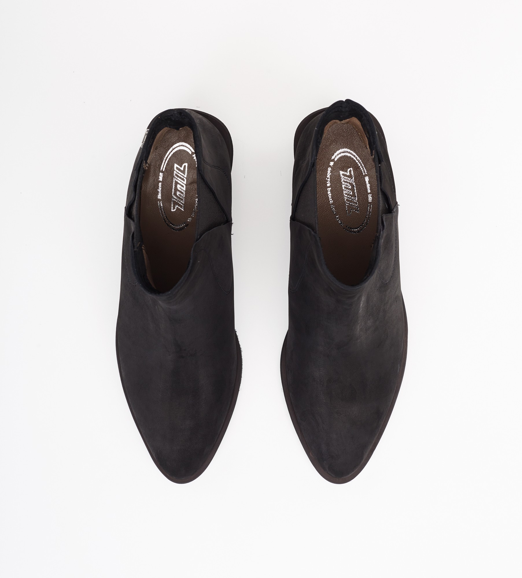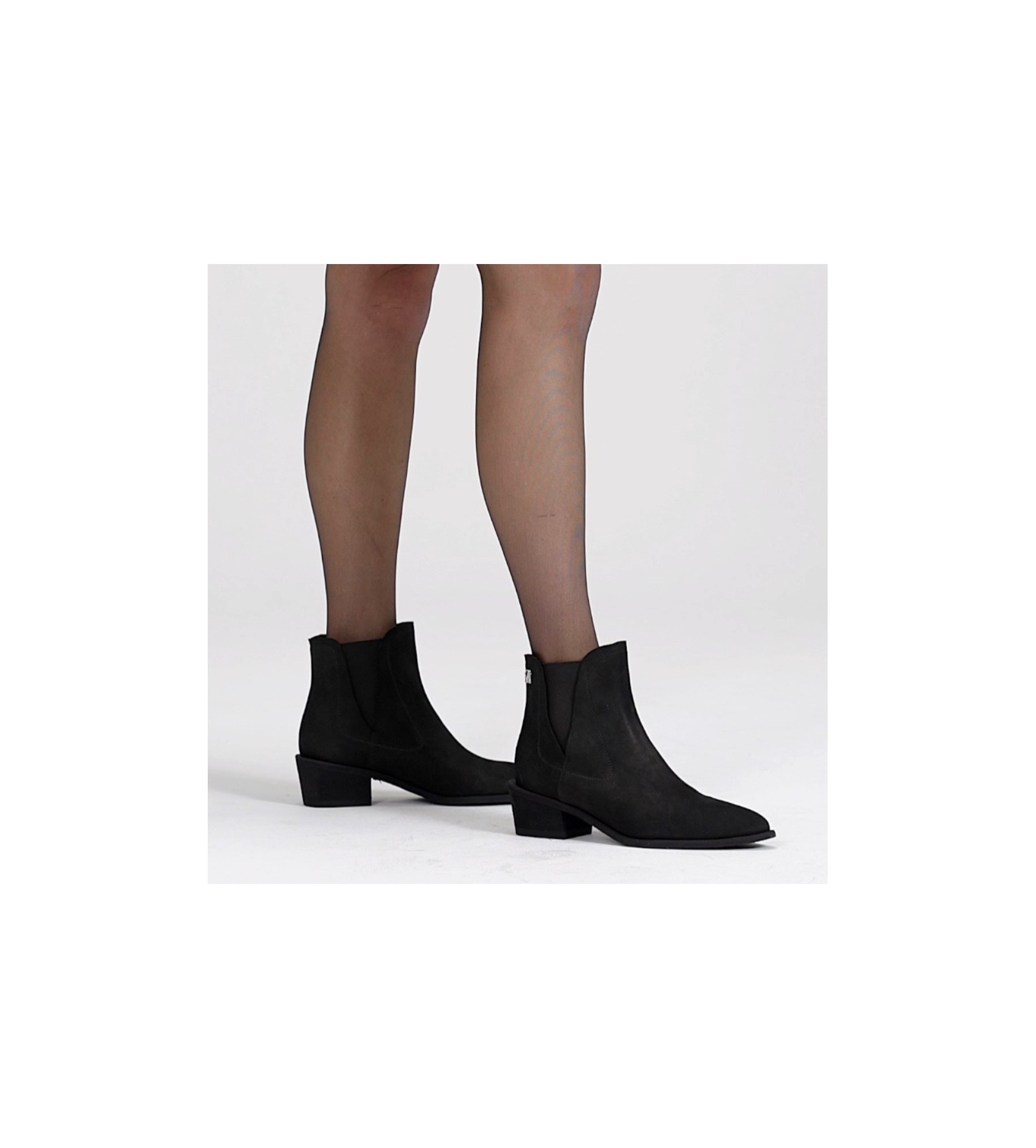 Czarne efektowne sztyblety wykonane są z naturalnej, zamszowej skóry. Mają elegancki design z elastycznymi gumkami po bokach, co ułatwia zakładanie. Wnętrze i wkładka wykonane są z miękkiej skóry jagnięcej, zapewniając komfort noszenia. Obcas ma wysokość 4 cm. Te sztyblety łączą w sobie styl i wygodę, idealne na różne okazje.