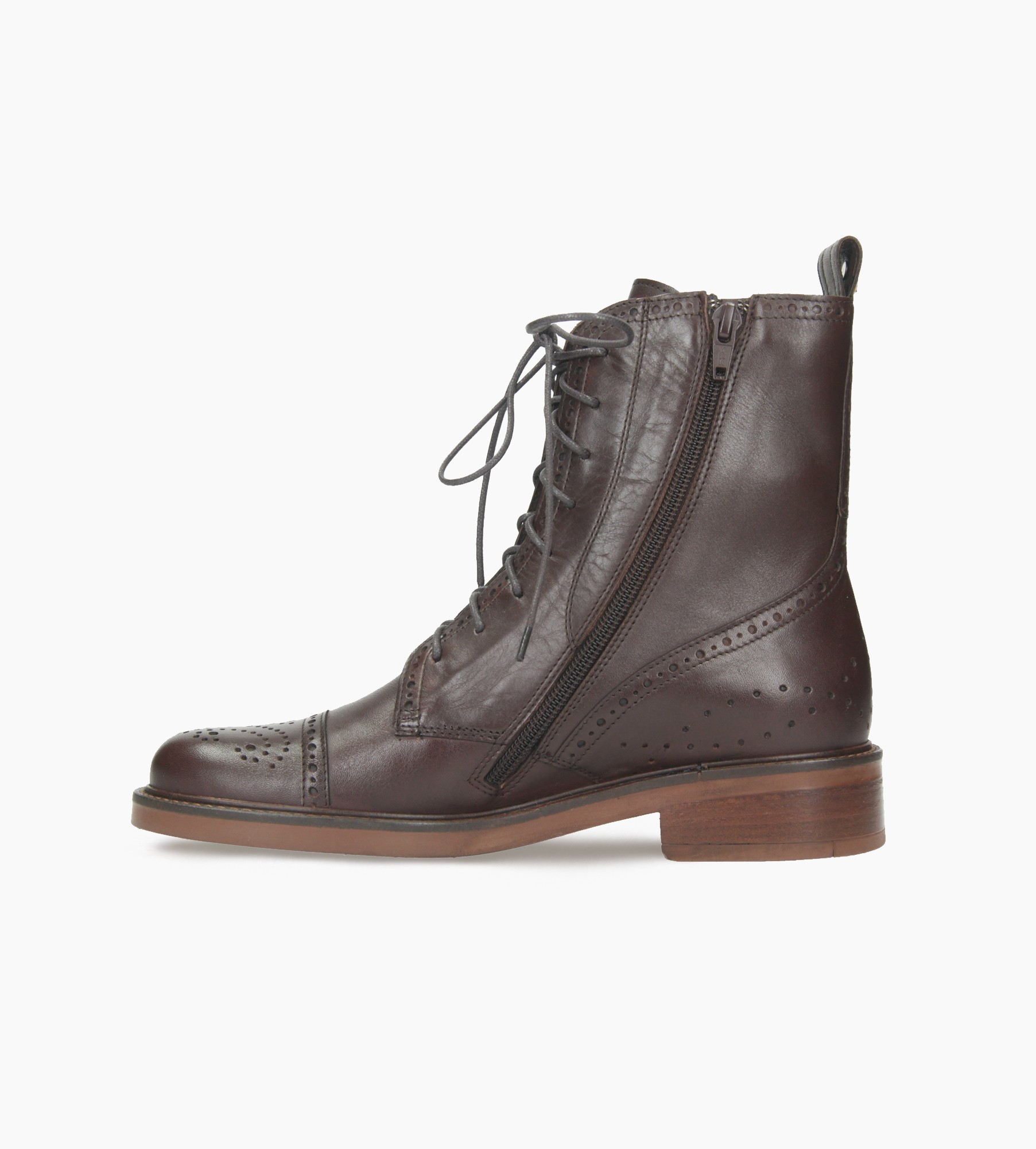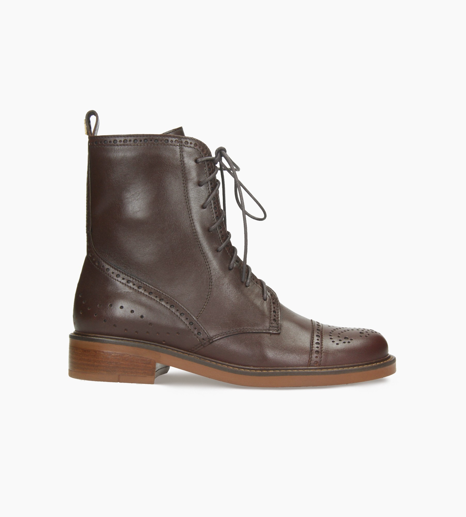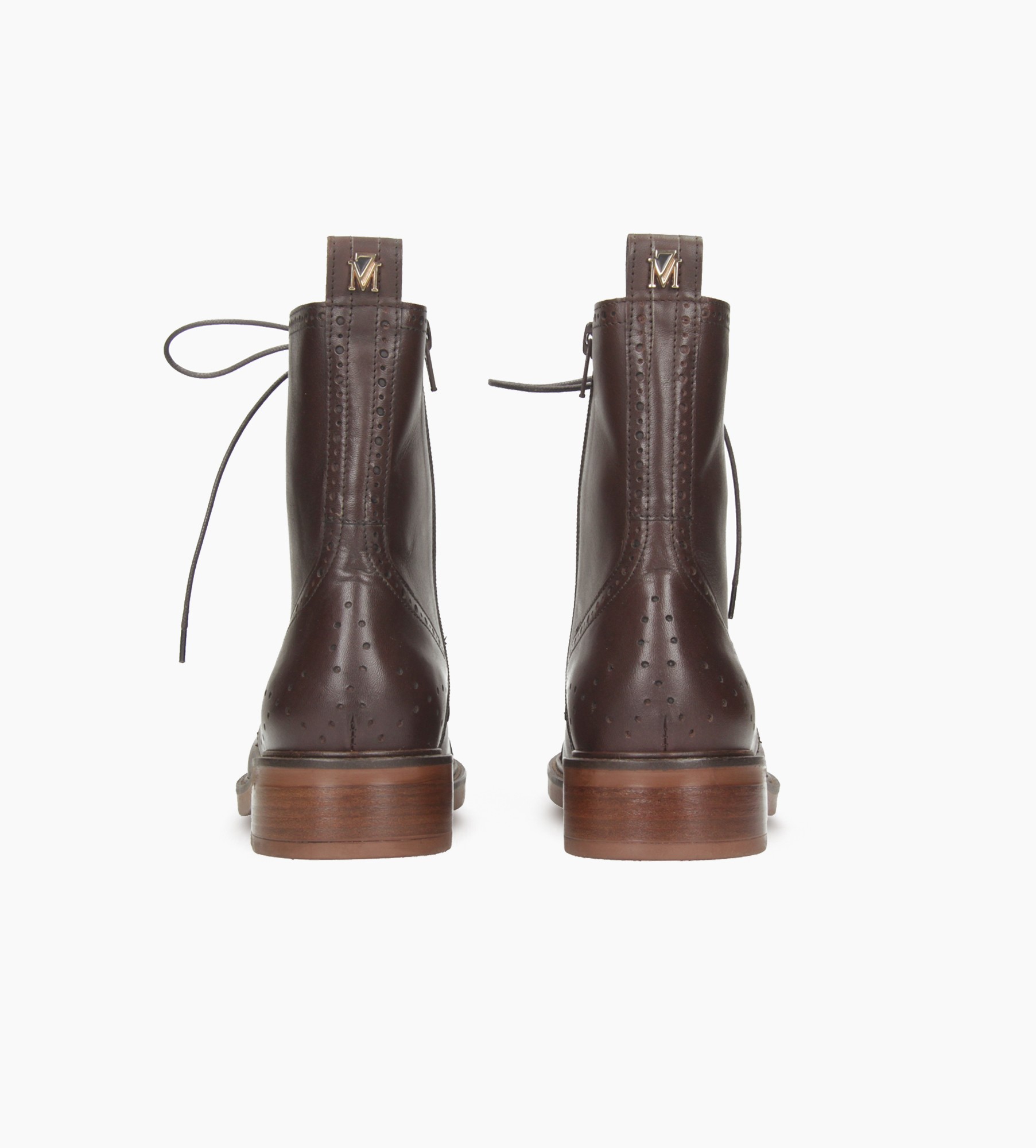 Brązowe trzewiki zachwycają szlachetnym odcieniem czekolady i perfekcyjnym wykonaniem. Cholewka uszyta z najwyższej jakości skóry cielęcej subtelnie układa się na stopie, podkreślając jej naturalny kształt, a wewnętrzna wyściółka z miękkiej jagnięcej skóry zapewnia wyjątkowy komfort, nawet w chłodniejsze dni.