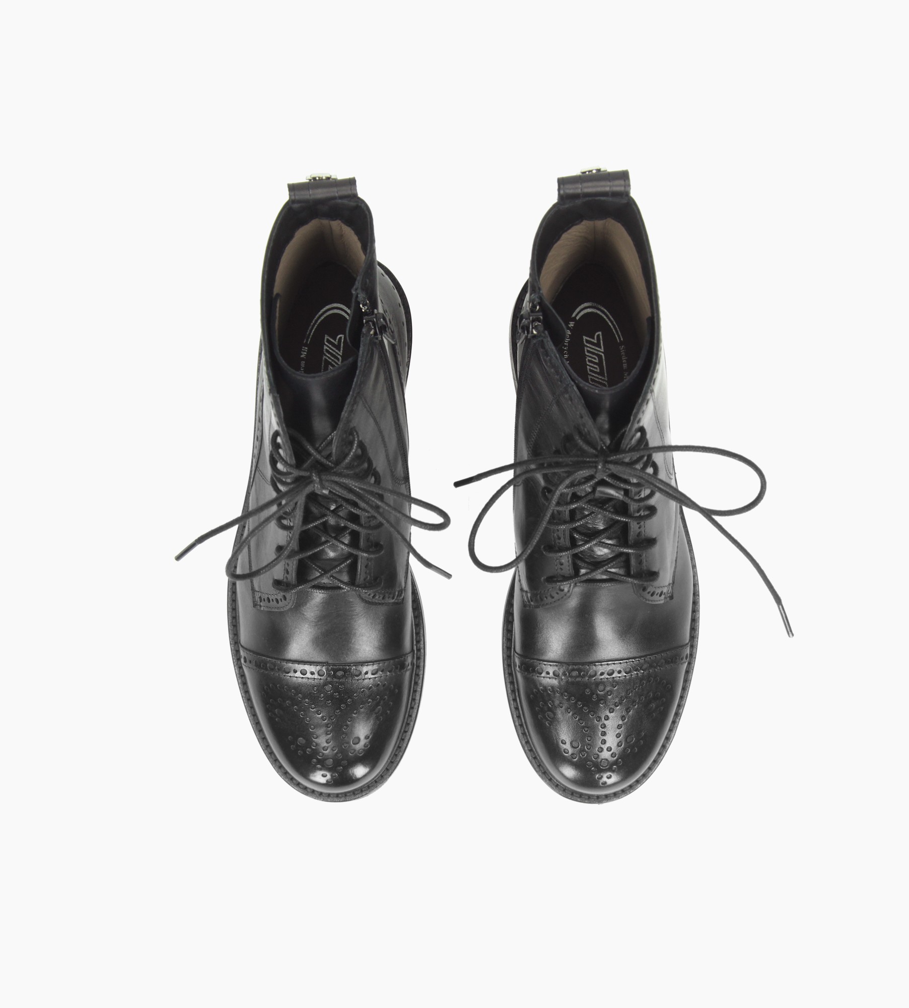 Czarne trzewiki damskie z naturalnej skóry cielęcej to esencja nowoczesnego stylu, połączonego z funkcjonalnością i elegancją. Wykonane z najwyższej jakości skóry naturalnej, buty te zapewniają nie tylko wyjątkową trwałość, ale także doskonały komfort noszenia. Subtelne perforacje zdobiące cholewkę nadają im lekkości i oryginalnego wyglądu, podkreślając ich charakter. Praktyczny suwak umieszczony z boku trzewików gwarantuje łatwe zakładanie i zdejmowanie, co sprawia, że są one nie tylko stylowe, ale również niezwykle wygodne w codziennym użytkowaniu. Klasyczny czarny kolor sprawia, że te trzewiki są uniwersalnym dodatkiem do każdej garderoby, doskonale komponując się zarówno z casualowymi, jak i bardziej eleganckimi stylizacjami.