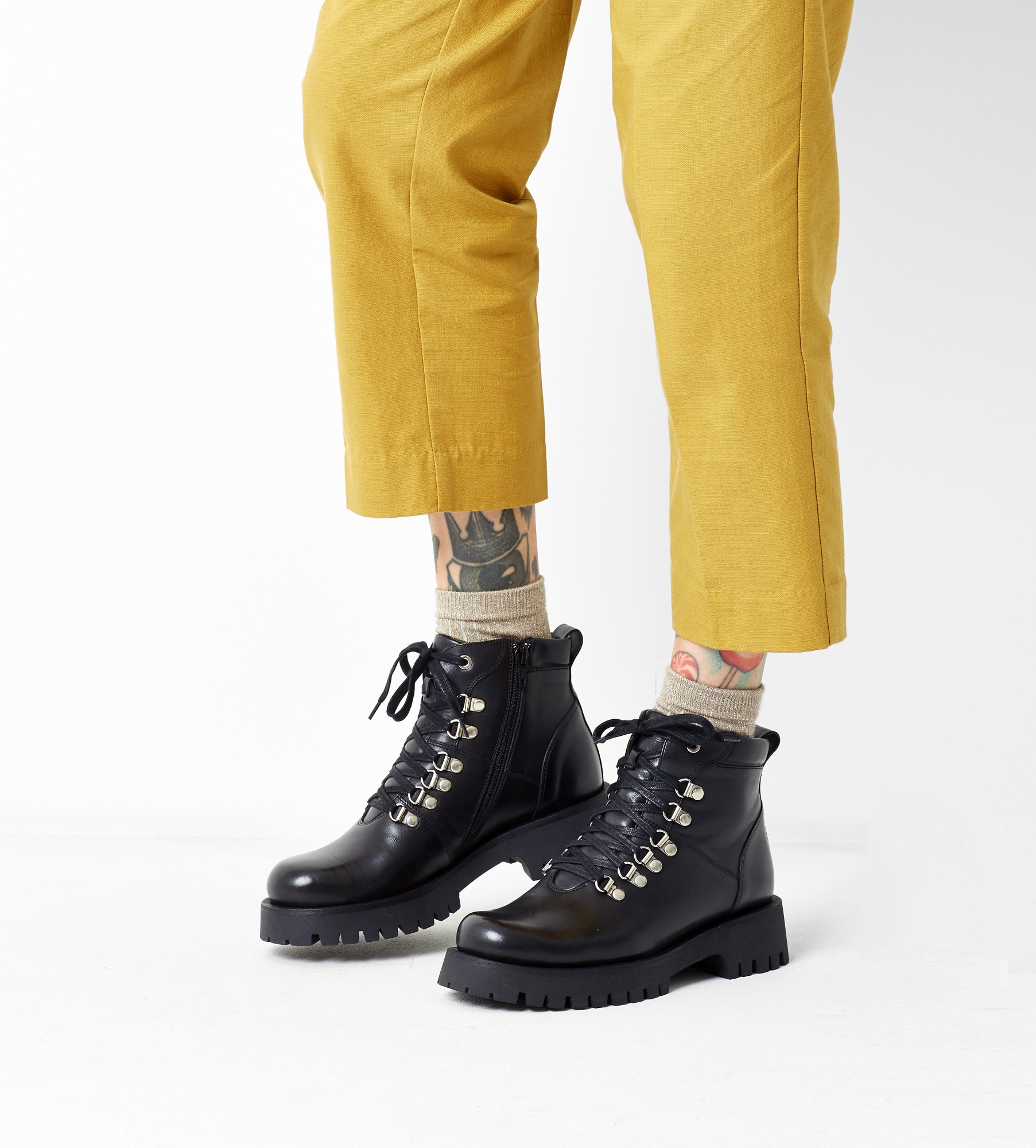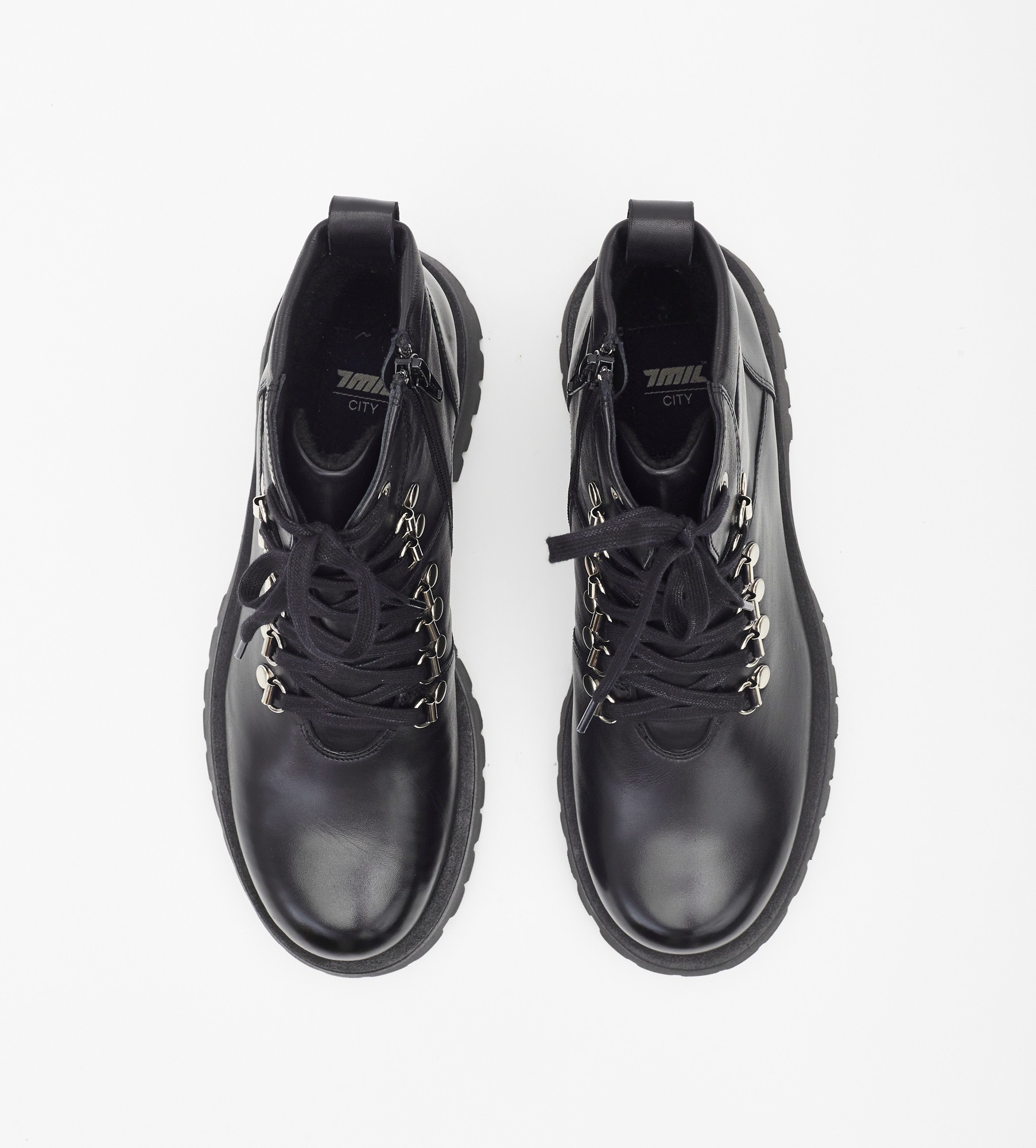 Czarne trzewiki damskie z naturalnej skóry cielęcej to eleganckie, skórzane buty, idealne na różne okazje. Są one wykonane z wysokiej jakości skóry licowej, co zapewnia trwałość i komfort użytkowania. Charakteryzują się klasycznym, czarnym kolorem, który pasuje do wielu stylizacji.